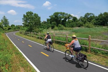 Multi-use bike paths (or shared-use paths) are dedicated, paved (asphalt/concrete) or packed-gravel trails designed for pedestrians, cyclists, skaters, and scooter users, often physically separated from motorized traffic. These, such as the Indian Bend Wash (12 mi) or Grand Canal Path in